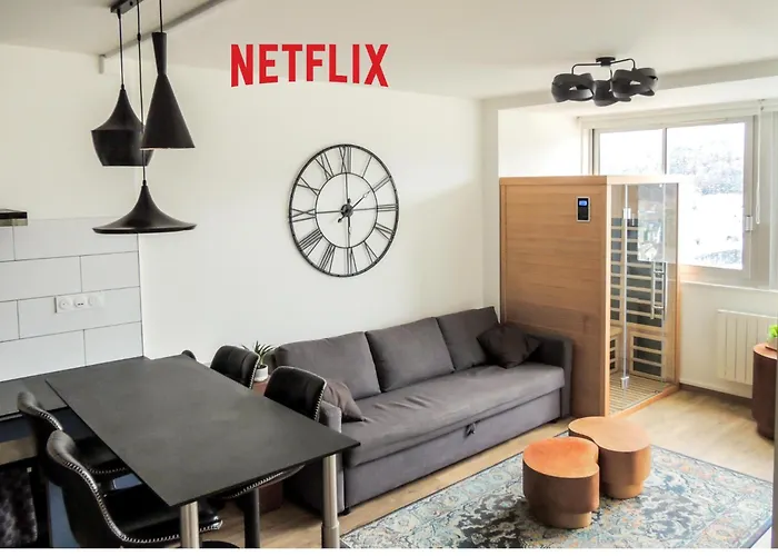 Plein Centre-Ville T2 Avec Sauna Aix-les-Bains apartment is located a 5-minute walk from Gare d'Aix-les-Bains-Le Revard train station and within 500 metres of the Church of Notre-Dame of Aix-les-Bains. Guests can make use of Wi-Fi for both business and leisure purposes.